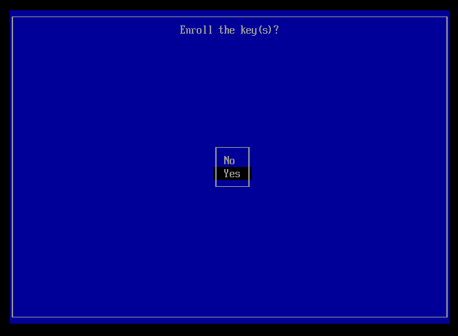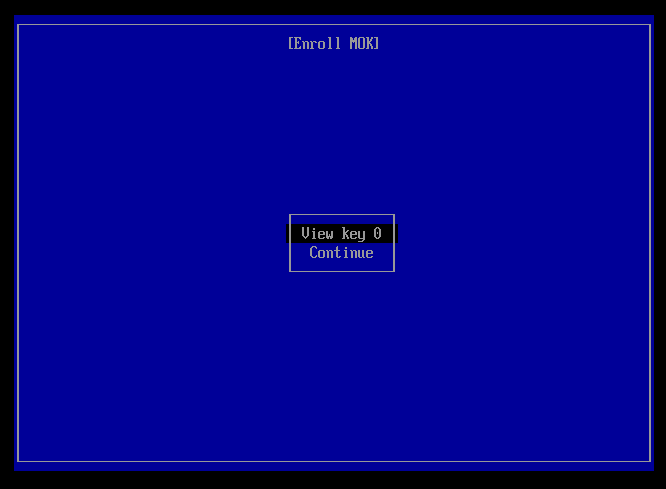 確認完之後按任意鍵回到 Enroll MOK 的畫面,選擇「Continue」後選擇「Yes」確認加入 MOK