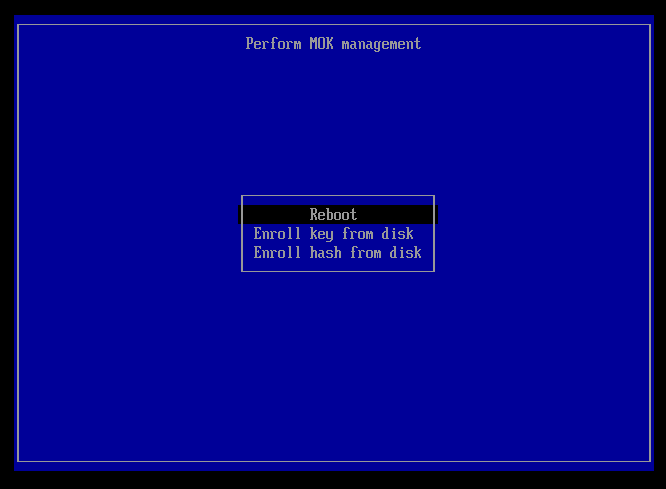 完成後重新開機,重新開機後會進入 MOK 管理的畫面